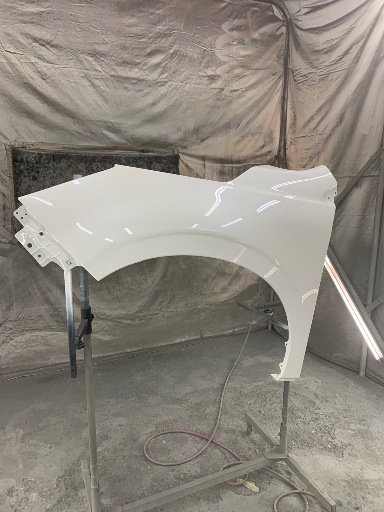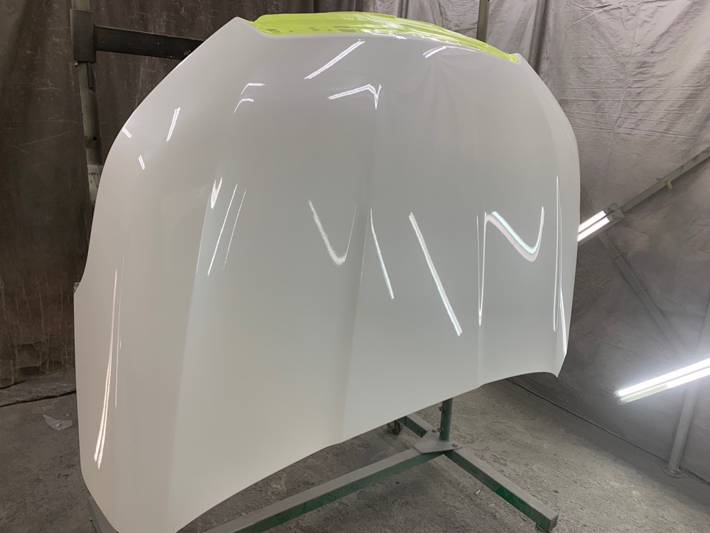 アルミ製ボンネット鈑金、フェンダー交換、クロスメンバー上部鈑金など、その他修理をしまして綺麗に仕上がりました!スリーコートパールでしたがフェンダーも、ブロックでペイントでわからないくらいまで調色もして、ドアまでぼかす必要がなくなり、コストも抑える事ができました!